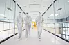Mitarbeiter von GlobalFoundries betreten den Reinraum in der Fab 1 in Dresden.GlobalFoundries